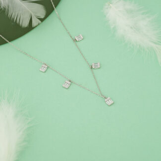 925 Sterling Silver Necklace – Baguette & Solitaire Drop Pendant with Zircon Accents