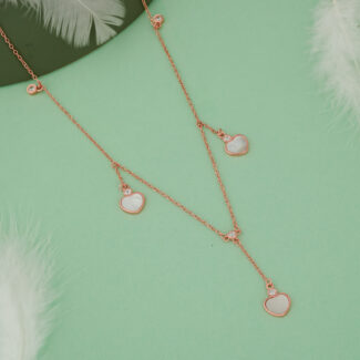 925 Sterling Silver Necklace – Rose Gold-Plated Triple Heart Charm Design with Zircon Accents