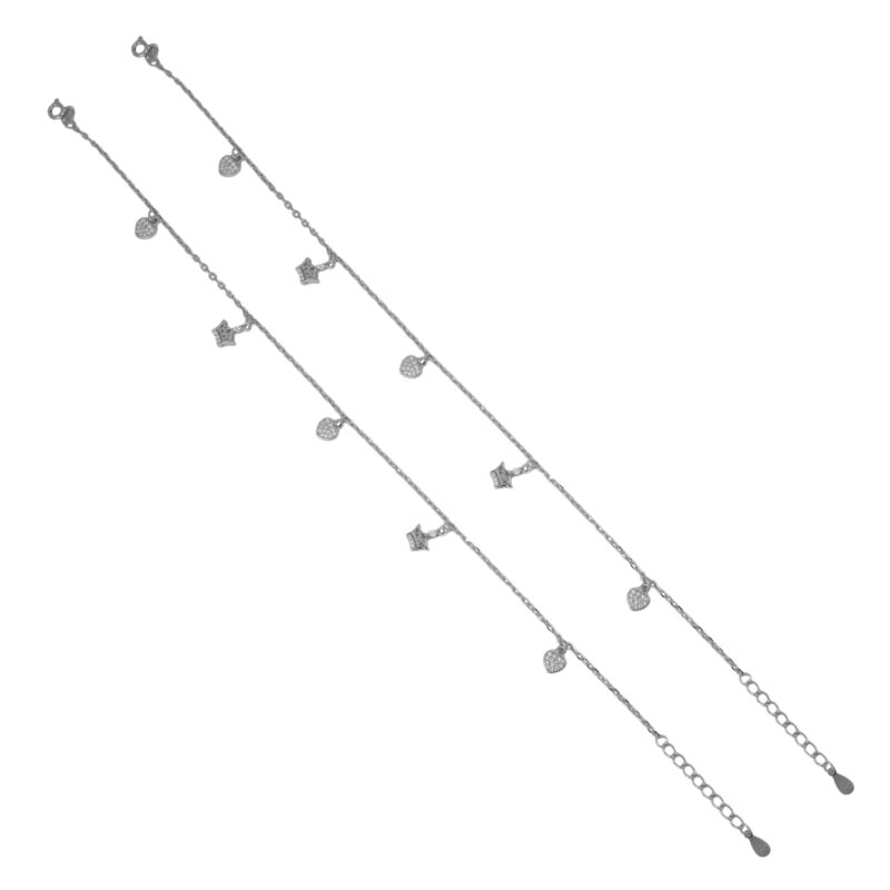 Add a regal touch to your accessory collection with this 925 Sterling Silver Crown & Heart Charm Anklet. Featuring alternating sparkling heart and royal crown charms, this anklet beautifully balances elegance and charm. Each charm is encrusted with fine zircon stones, giving it a luxurious sparkle that enhances both casual and festive outfits.