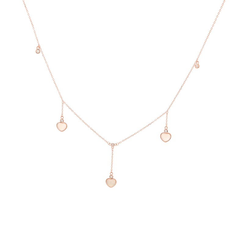 925 Sterling Silver Necklace – Rose Gold-Plated Triple Heart Charm Design with Zircon Accents