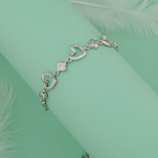 Sterling Silver Adjustable Bracelet – Crescent Moon, Heart & Zircon Accents